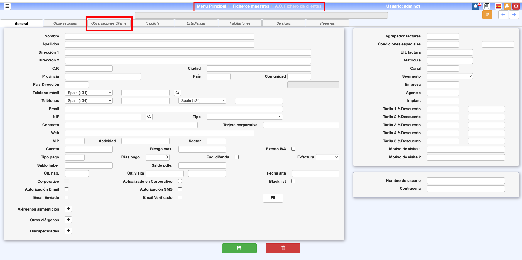 Si por otros motivos hay clientes que van a usar estos servicios, debemos cargarlos en esta habitación ficticia.