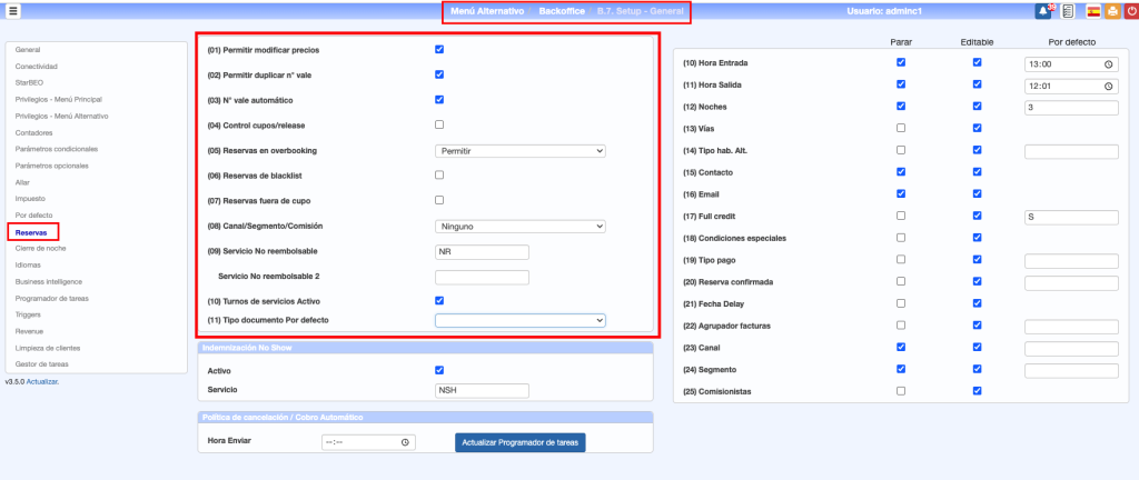 Hay que tener en cuenta que el Cierre de Noche automático cancelará las reservas que no hayan hecho checkin marcándolas como NoShow.