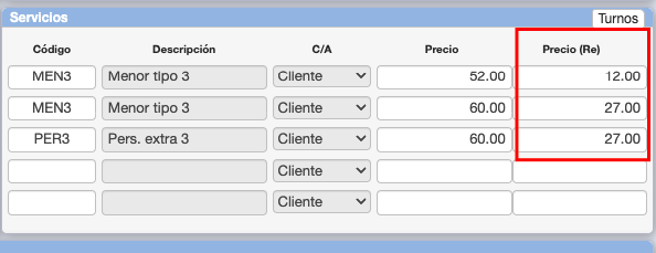 Si el servicio está configurado en la tarifa como Precio por Pax, entonces se añadirán tantos servicios como pax haya en la reserva. En caso de que el precio sea total, se añadirá un servicio en la reserva. En ambos casos, el precio será el calculado en el punto 1.