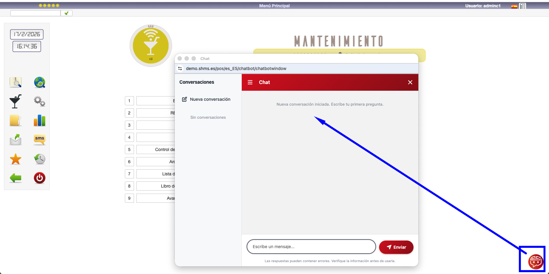 La opción «Menú principal» accede al manual con imágenes interactivas de los menús de StarPOS.